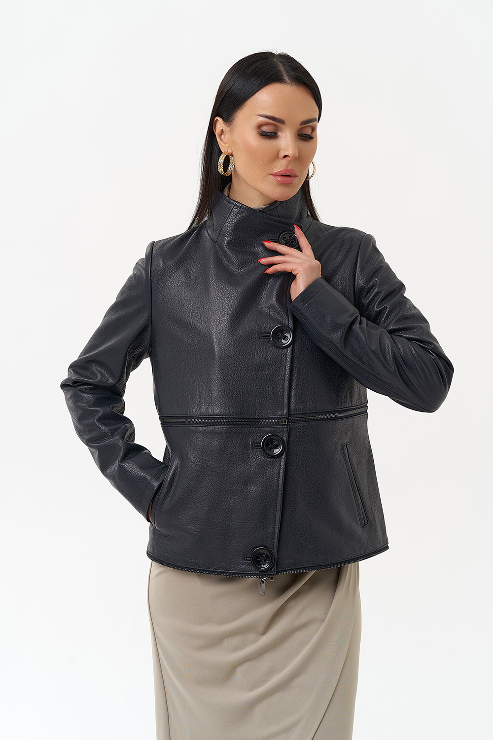 Плащ-трансформер из натуральной бараньей кожи в синем цвете в полуприлегающем фасоне. Подойдет для тех, кто любит перемены! Данное изделие можно носить в трех вариациях: укороченная кожаная куртка, классическая кожаная куртка и плащ. Акцентными деталями этой модели является ворот-стойка и большие пуговицы. Прочная и износостойкая кожа даст возможность сохранить ваше изделие на долгие годы, а количество вариаций образов с данной моделью позволит вам всегда оставаться в тренде.